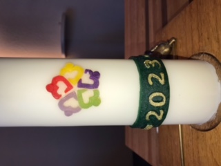 De paaskaars voor dit jaar heeft het actuele thema "vrede".